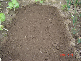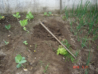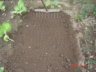 A semente de cenouras, depois de lançada a semente dei uma "picadela" pouco profunda (3cm) à terra do cebolo para que a semente não ficasse na superfície