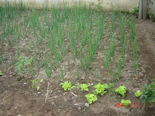 Depois também aproveitei para semear cenouras no meio do cebolo