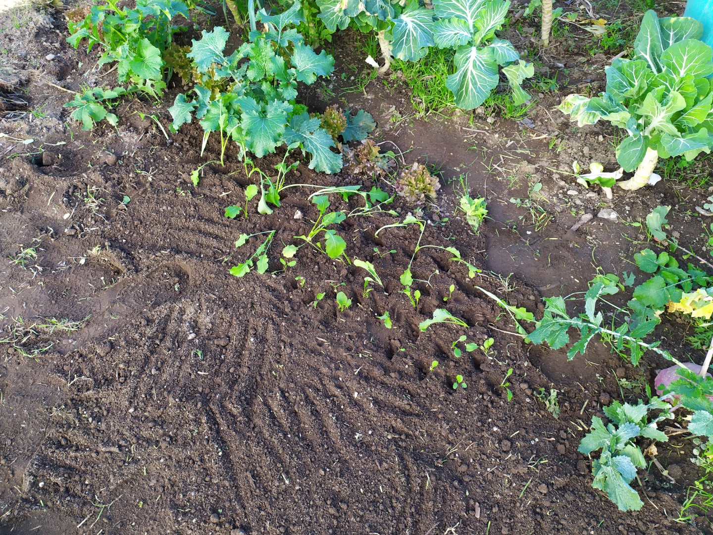 Por último, o vizinho tem um nabiçal muito basto, assim fui lá arrancar algumas nabiças e plantei-as. Não é usual plantar, mas não custa tentar