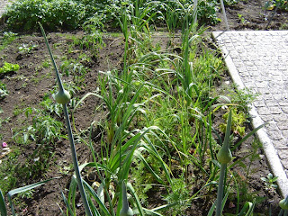 Não sei se conseguem ver os dois regos de alhos e no seu meio cenouras.